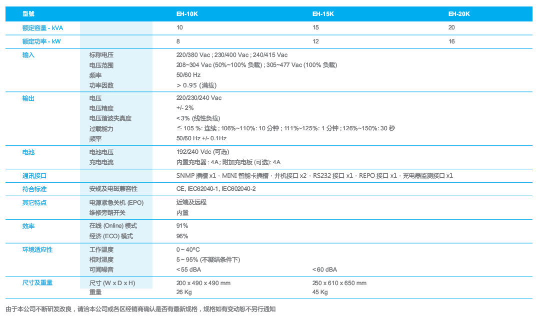 • 采用纯在线双变换技术,使得电源输出端与输入端完全隔离