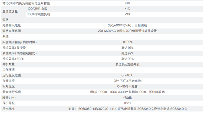 •输出功率因数最高可达1,带载能力大幅增强•超前及滞后全负载范围内,提供100%容量输出,无需降额