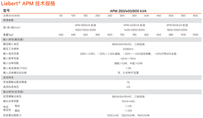 产品型号:Liebert APM 50~600kVA