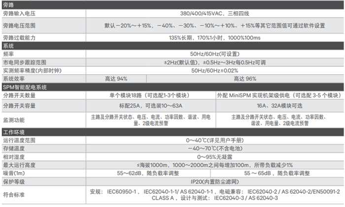 * 便于维护:模块化,热插拔,全正面维护,UPS、旁路、配电均可在2min内维修更换