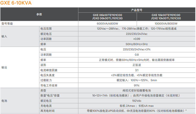 产品型号:GXE 6-10KVA高性能UPS GXE 6-10KVA高性能UPS